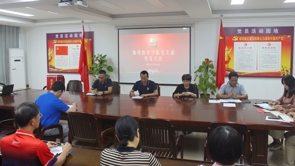 2022年11月14日,继续教育学院党支部召开党员大会,审议、表决通过继续教育学院党支部委员会工作报告、选举办法、候选人名单和监计票人名单,选举产生继续教育学院党支部新一届委员会委员。(陈昊宇/文图)