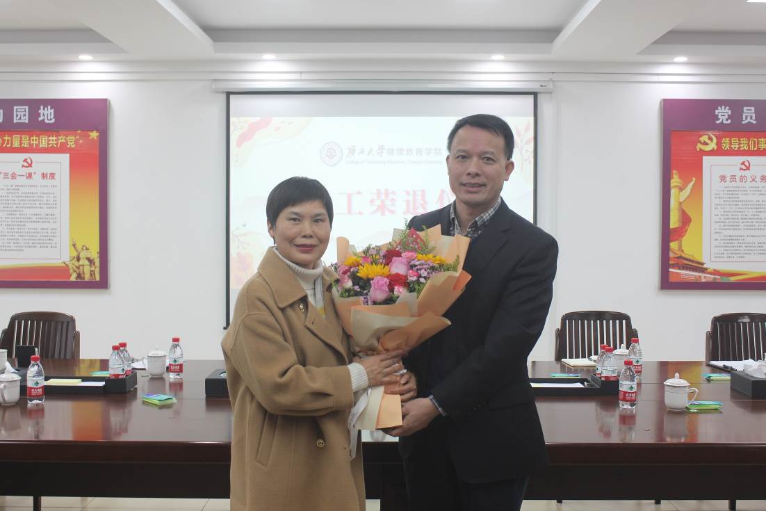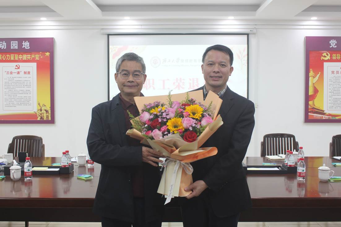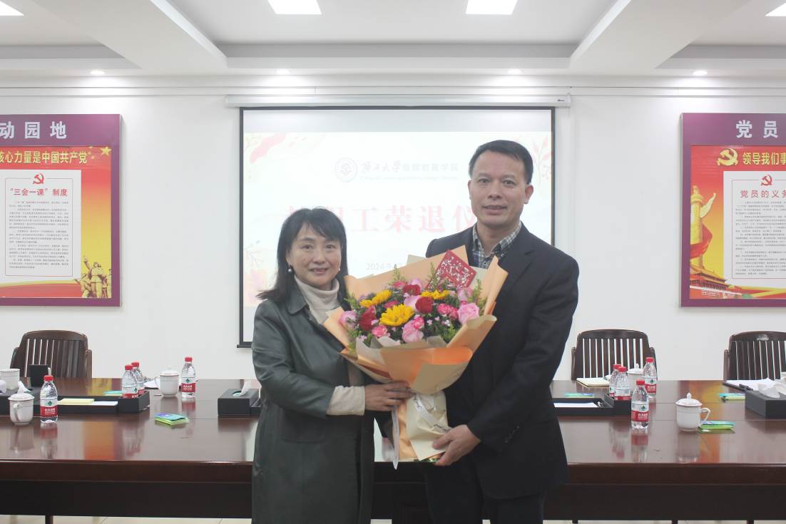会上,闭富春首先向2024年退休的教职工表达了衷心感谢和美好祝愿,对退休教职工为学院改革发展做出的贡献给予高度肯定,并代表学院向5位老师赠送了鲜花,祝愿他们开启人生新的旅程。他说,退休老师永远是学院的宝贵财富,并期待他们常回来看看,继续为学院的发展贡献智慧和力量。