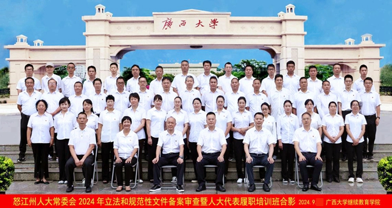 9月22日,怒江州人大常委会2024年立法和规范性文件备案审查暨人大代表履职培训班在我院开班。广西大学党委常委、副校长夏国恩,怒江州人大常委会党组成员、副主任罗晓亮出席开班式,继续教育学院院长闭富春主持开班式。