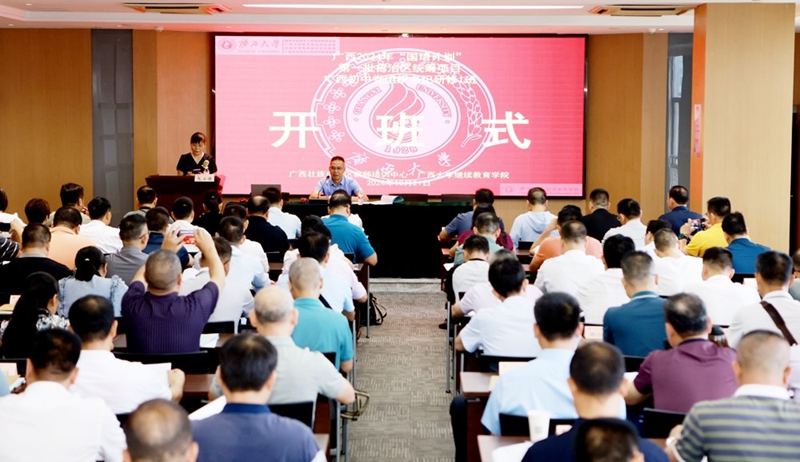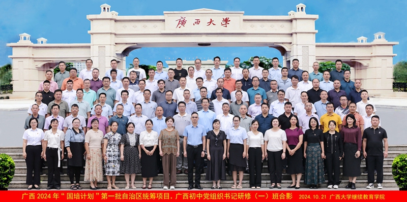 10月21日上午,广西2024年“国培计划”第一批自治区统筹项目——广西初中党组织书记研修1班在广西大学开班,我院副院长陈海出席开班式并致辞。