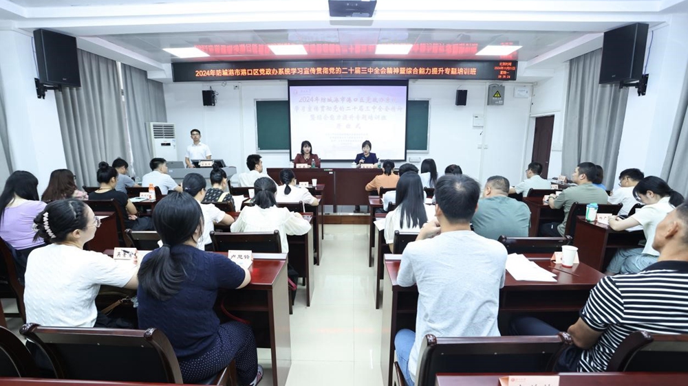 10月21日,2024年防城港市港口区党政办系统学习宣传贯彻党的二十届三中全会精神暨综合能力提升专题培训班(第一期)在我院开班。防城港市港口区政府办公室副主任何春出席开班式并作动员讲话,我院培训中心副主任张祥玲出席开班式并致辞。