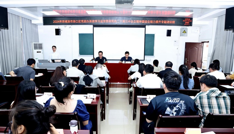 10月24日,2024年防城港市港口区党政办系统学习宣传贯彻党的二十届三中全会精神暨综合能力提升专题培训班(第二期)在我院开班,防城港市港口区人民政府办公室主任黄琛出席开班式并作动员讲话,我院培训中心副主任李文出席开班式并致辞。