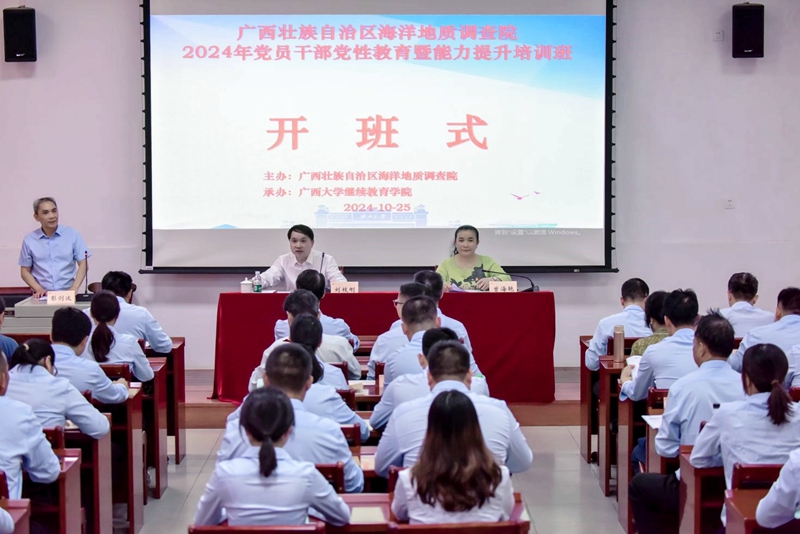 10月25日,广西壮族自治区海洋地质调查院2024年党员干部党性教育暨能力提升培训班在我院开班,广西壮族自治区海洋地质调查院党委书记、院长刘枝刚出席开班式并作动员讲话,我院副院长曾海艳出席开班式并致辞。