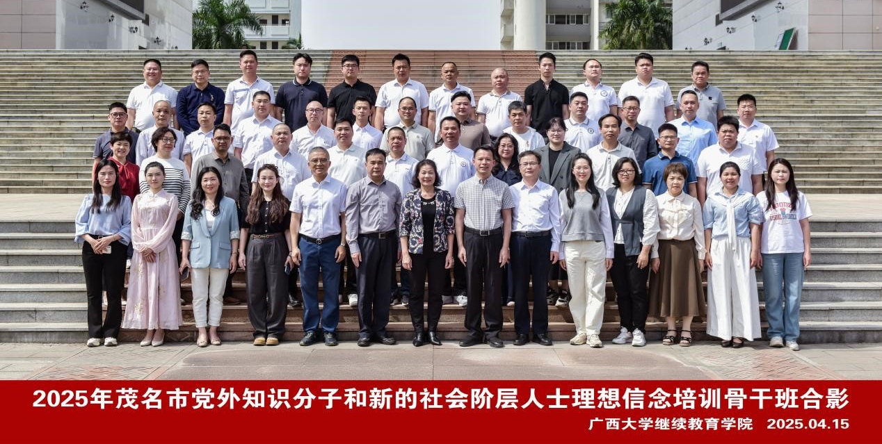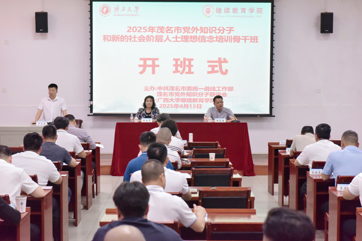 2025年4月15日,2025年茂名市党外知识分子和新的社会阶层人士理想信念培训骨干班在我校开班,茂名市委统战部二级调研员邹肖萍、mk开户院长闭富春出席开班式。