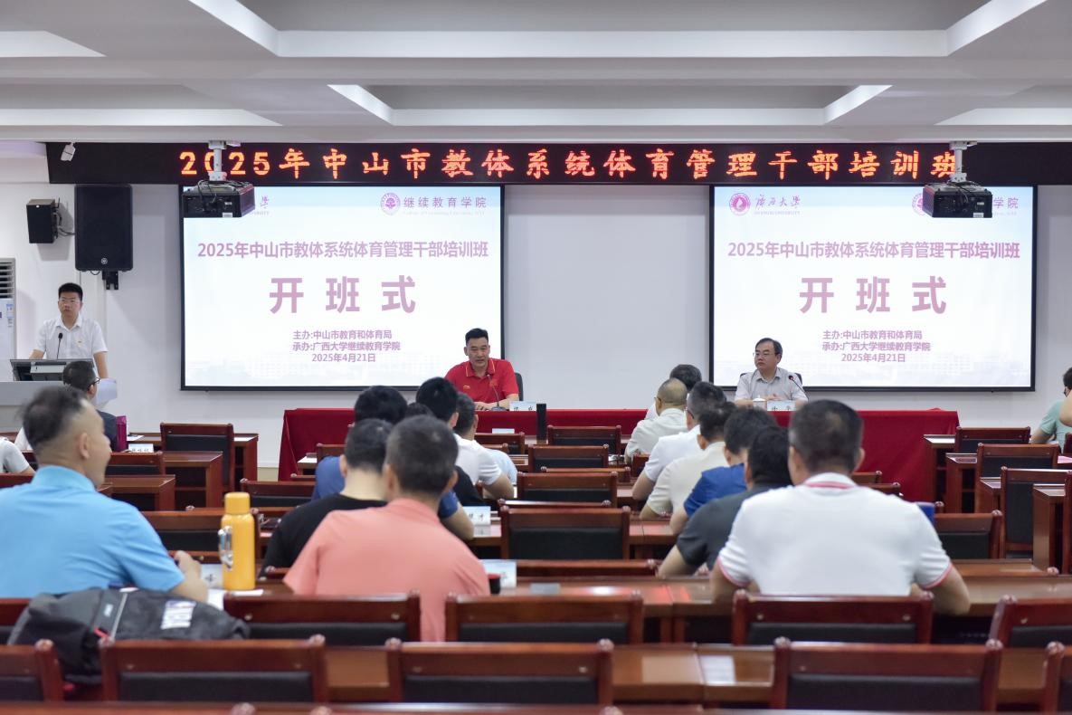 2025年4月21日,2025年中山市教体系统体育管理干部培训班在我校开班。中山市教育和体育局副局长陈威、mk开户副院长徐华出席开班式。