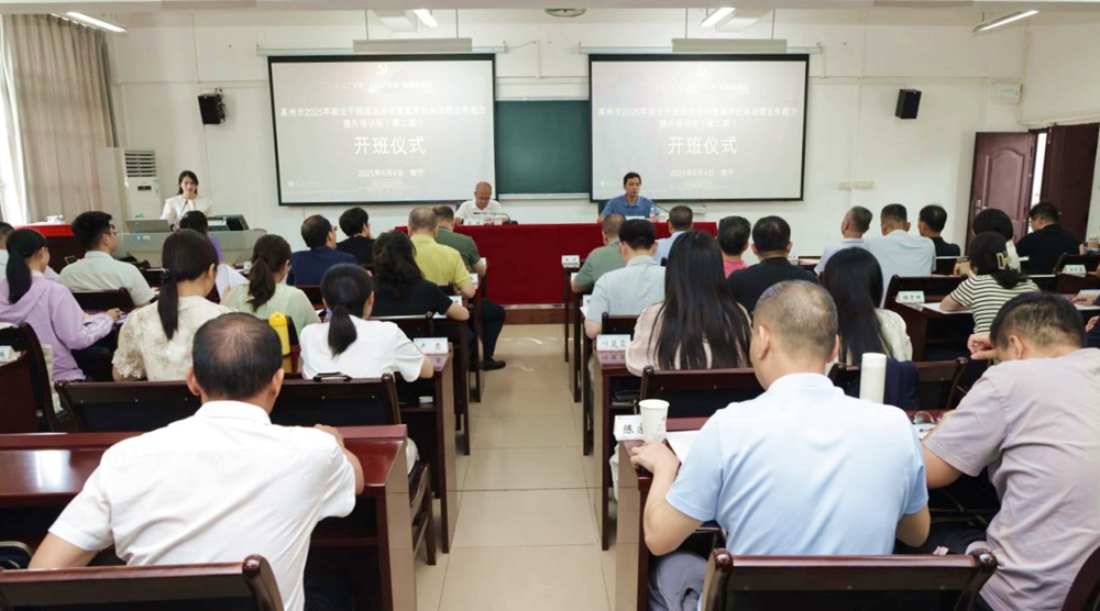 6月4日,高州市2025年政法干部政治轮训暨基层社会治理业务能力提升培训班(第2期)在我院开班。中共高州市委常委、政法委副书记黄璞出席开班式并作动员讲话,我院干部培训中心负责人出席开班式并致辞。