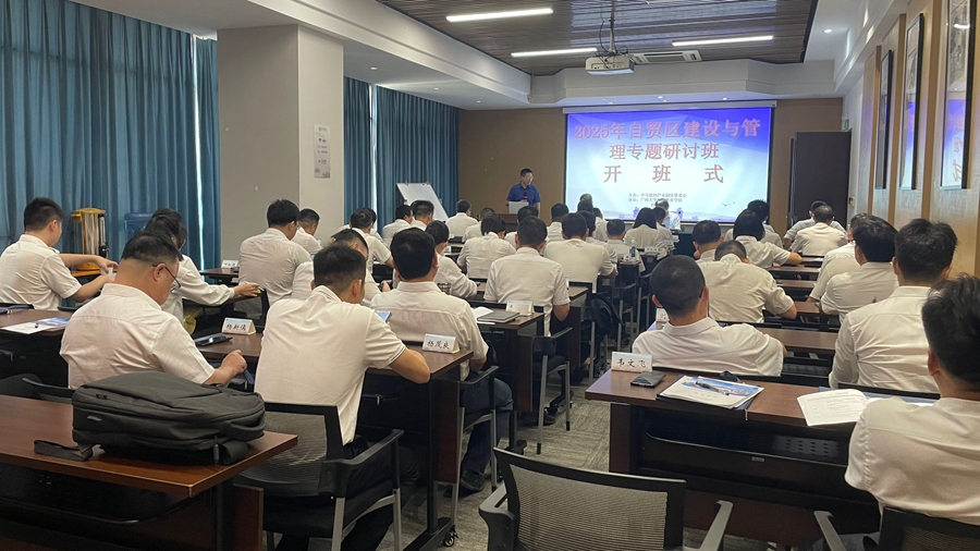 7月28日,2025年自贸区建设与管理专题研讨班在我校开班。中马钦州产业园区组织人事局副局长、协理局长公维新,mk开户副院长邓珍琪出席开班式并讲话。
