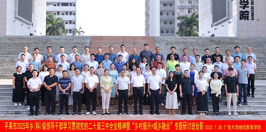 7月28日,平果市2025年乡(科)级领导干部学习贯彻党的二十届三中全会精神暨“乡村振兴+城乡融合”专题研讨班在我校开班。中共平果市委组织部副部长、市老干部局局长(兼)阮俊杰,mk开户干部培训中心主任黎耀凡出席开班式并讲话。