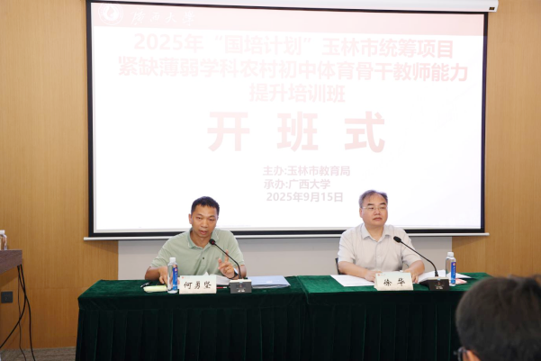 为深入贯彻落实国家关于新时代教师队伍建设改革的决策部署,提升农村初中体育骨干教师的专业能力与综合素养,2025年9月15日,由玉林市教育局统筹、广西大学承办的2025年“国培计划”玉林市统筹项目——紧缺薄弱学科农村初中体育骨干教师能力提升培训班在我校开班,玉林市教育局办公室主任、教师工作科负责人何勇坚和mk开户副院长徐华出席开班式并讲话,mk开户副教授范小俊主持开班式。