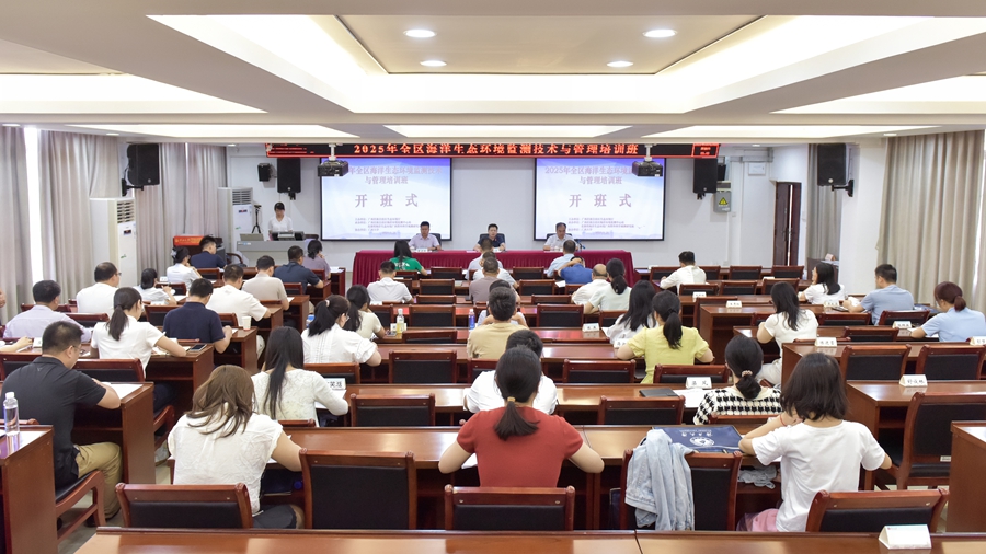 9月28日,2025全区海洋生态环境监测技术与管理培训班在我校开班,广西壮族自治区生态环境厅海洋生态环境处处长李维龙、广西壮族自治区海洋环境监测中心站副站长黄彦明出席开班式并讲话,mk开户副院长徐华出席开班式并致辞。