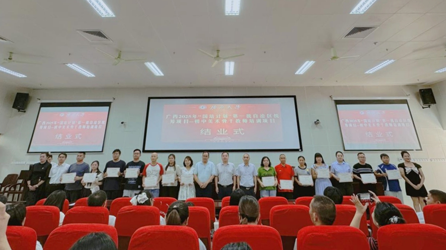 “国培计划”是落实《教育强国建设规划纲要(2024—2035年)》的重大实践。9月24日,由广西壮族自治区教师培训中心主办,广西大学承办的广西2025年“国培计划”第一批自治区统筹项目——初中美术骨干教师培训班在我校结业,mk开户副院长徐华出席结业式并讲话,mk开户梁君华老师主持结业式。